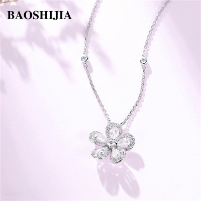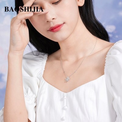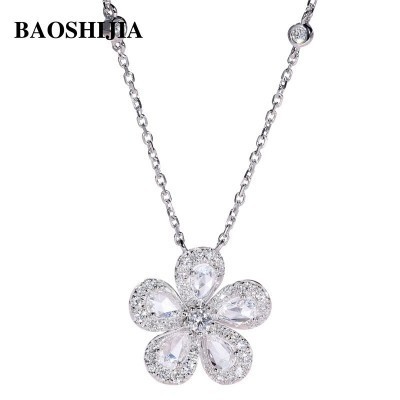 الرئيسية > BAOSHIJIA Womens Solid 18k White Gold Flower Necklace Clear Diamond Pendant Stylish Fine Jewelry An(