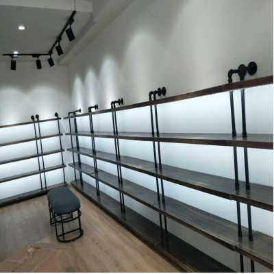 Retro solid wooden shoe store shoe rack, shopping mall shoe rack, mens and womens shoe store shoe