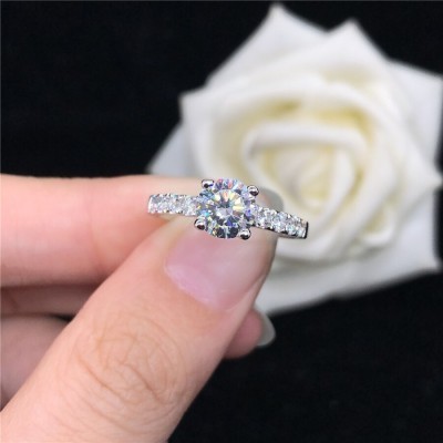 Certified 1CT Round Moissanite Diamond Anniversary Ring For Women Solid 18K White Gold AU750