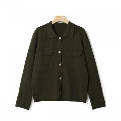 الرئيسية > يرتدي > Extrañar > 3 Colors Womens Turn-down Collar Sweater Long Sleeve Safari Style Ladies Simple Knit Cardigan with