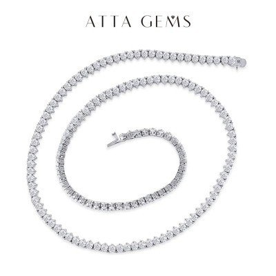 قلادة تنس من الفضة الإسترليني عيار 925 من ماركة ATTAGEMS، مرصعة بحجر مويسانيت أبيض دائري الشكل بقطر