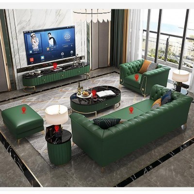 الرئيسية > السلع المنزلية > Modern living room, large flat, leather sofa, combination + TV cabinet + coffee table