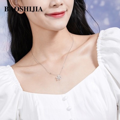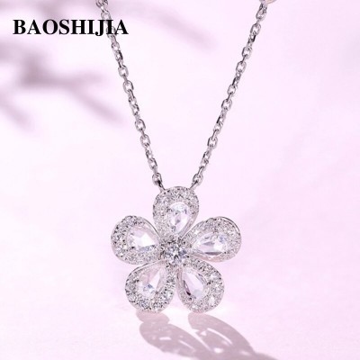 الرئيسية > BAOSHIJIA Womens Solid 18k White Gold Flower Necklace Clear Diamond Pendant Stylish Fine Jewelry An(