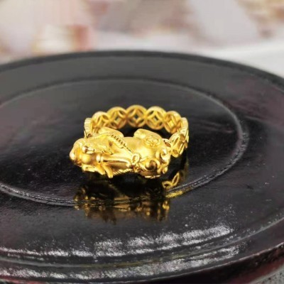 الرئيسية > يرتدي > Extrañar > Real 24K Yellow Gold Ring Lucky Coin Pixiu Ring 3D Craft Jewelry Best Gift 3 orders
