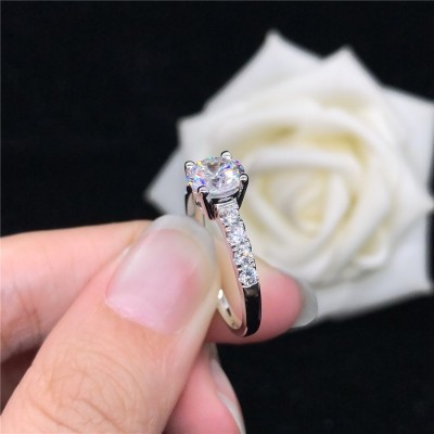 Certified 1CT Round Moissanite Diamond Anniversary Ring For Women Solid 18K White Gold AU750