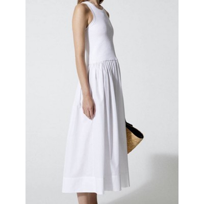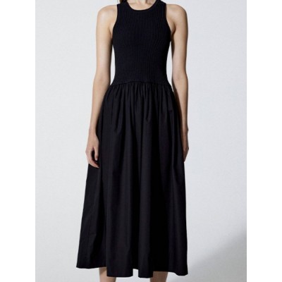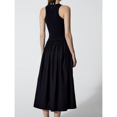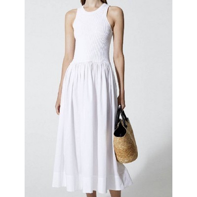 الرئيسية > يرتدي > Extrañar > 2022 Spring Summer New Round Neck Solid Color Sleeveless Stitching Pleated Women A-line Vest Midi Dr